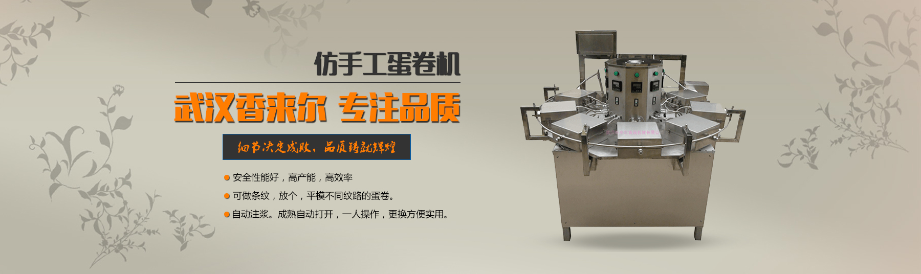 武漢香來爾食品機(jī)械有限公司成立于2001年2月,是生產(chǎn)銷售休閑食品加工設(shè)備的廠家。公司緊跟市場潮流與華工、華農(nóng)多名共同開發(fā)新穎、實(shí)用的適應(yīng)市場需求的食品機(jī)械,自有車、刨、鉆、銑、剪板、折彎等先l進(jìn)機(jī)床100多臺 套。7年誠信通會(huì)員,產(chǎn)品出口拉美、非洲、東南亞、歐洲等很多國家和地區(qū),國內(nèi)很多食品企業(yè)都是我們的合作伙伴。目前公司專門設(shè)立一個(gè)的售后 服務(wù)班子,在公司逐步發(fā)展強(qiáng)大的過程中,一直堅(jiān)持售后服務(wù)的同步發(fā)展,精良的食品設(shè)...
